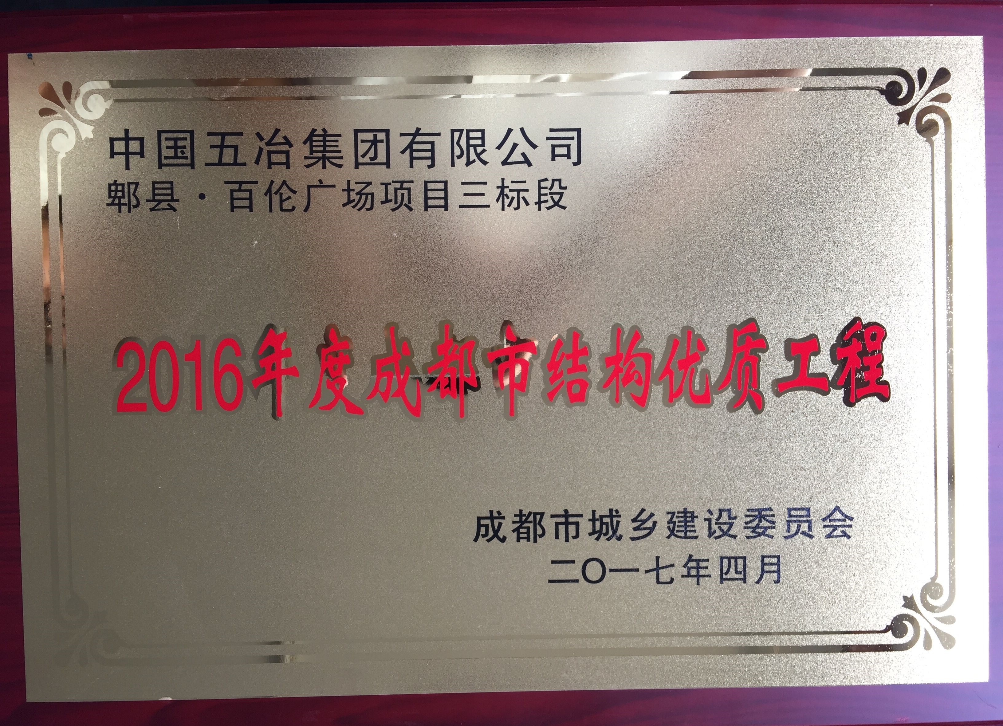 郫县百伦广场项目三标段—2016年度成都市结构优质工程