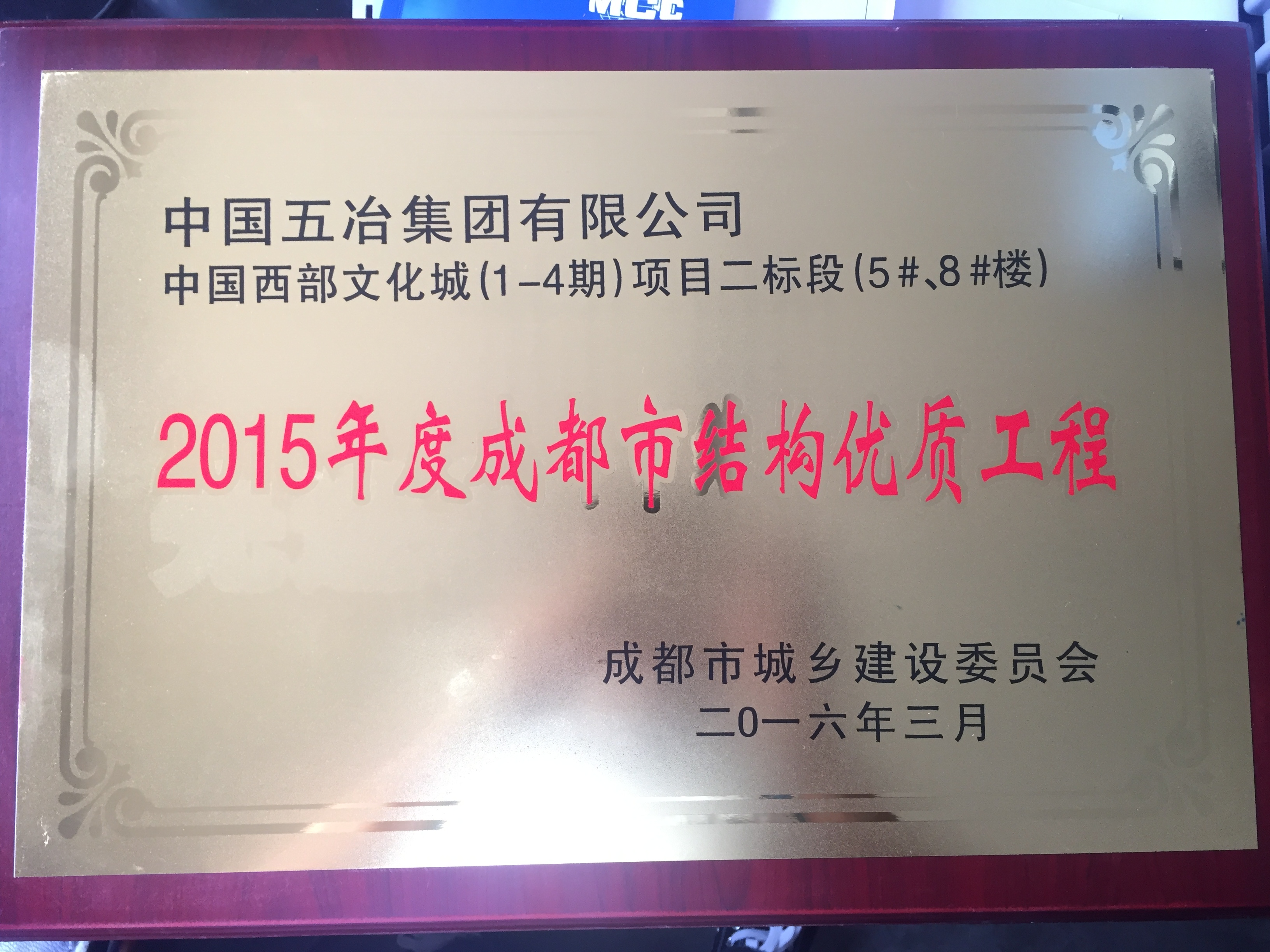 中国西部文化城(1-4期)项目二标段(5#、8#)—2015年度成都市结构优质工程