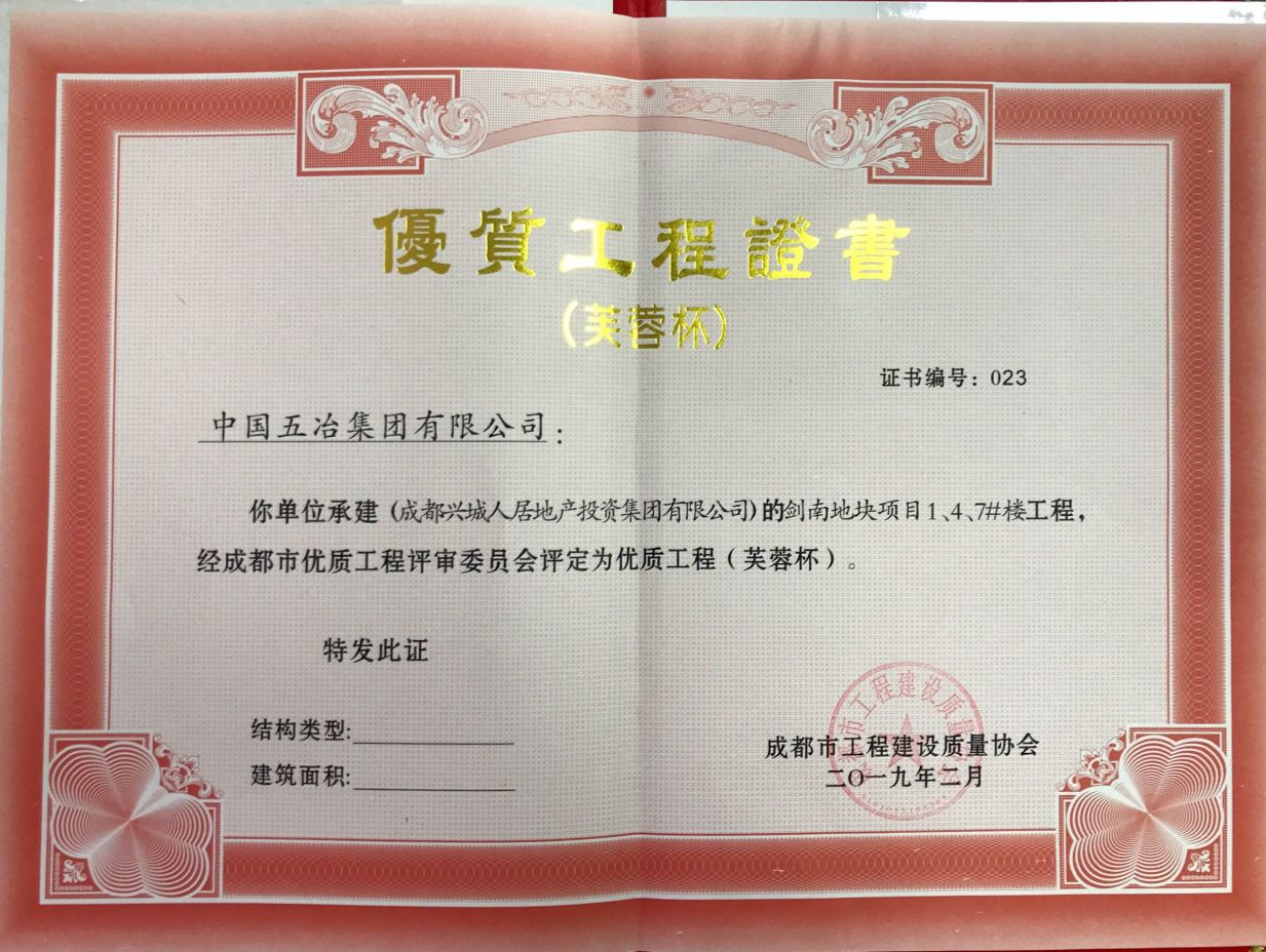 剑南地块项目1、4、7#楼-2018年度芙蓉杯