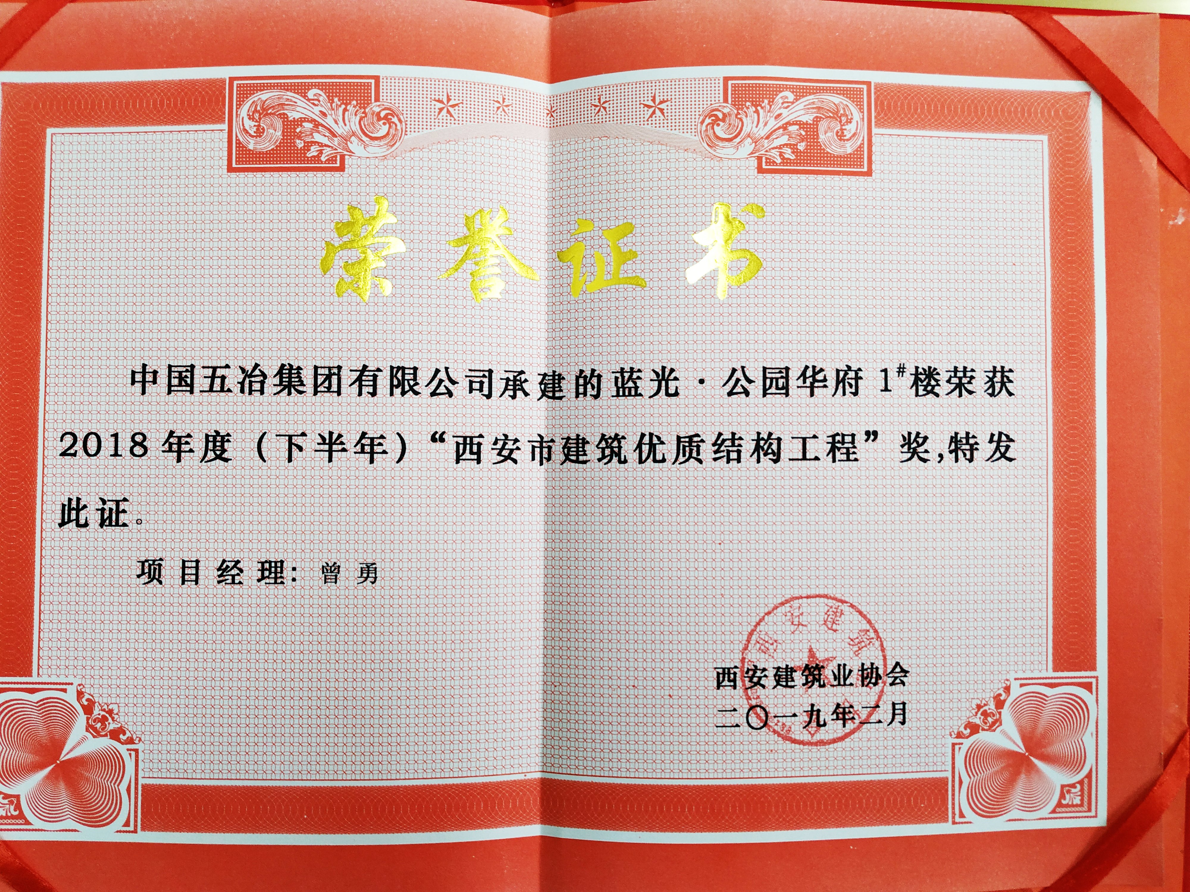 西安蓝光.华府公园一期1号楼—2018年度(下半年)西安市结构优质