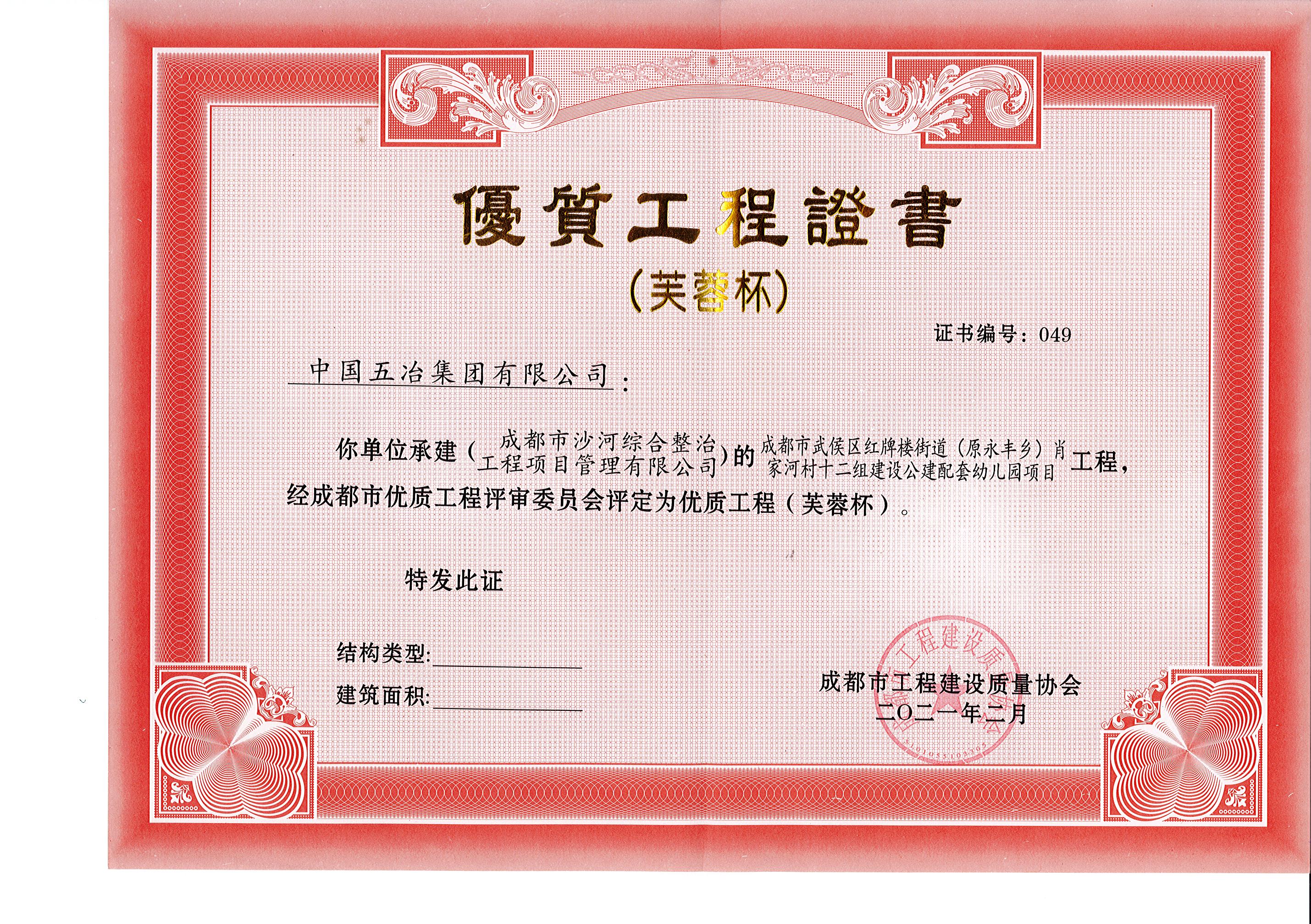 成都市武侯区红牌楼街道(原永丰乡)肖家河村十二组建设公建配套幼儿园项目—2020年成都市芙蓉杯