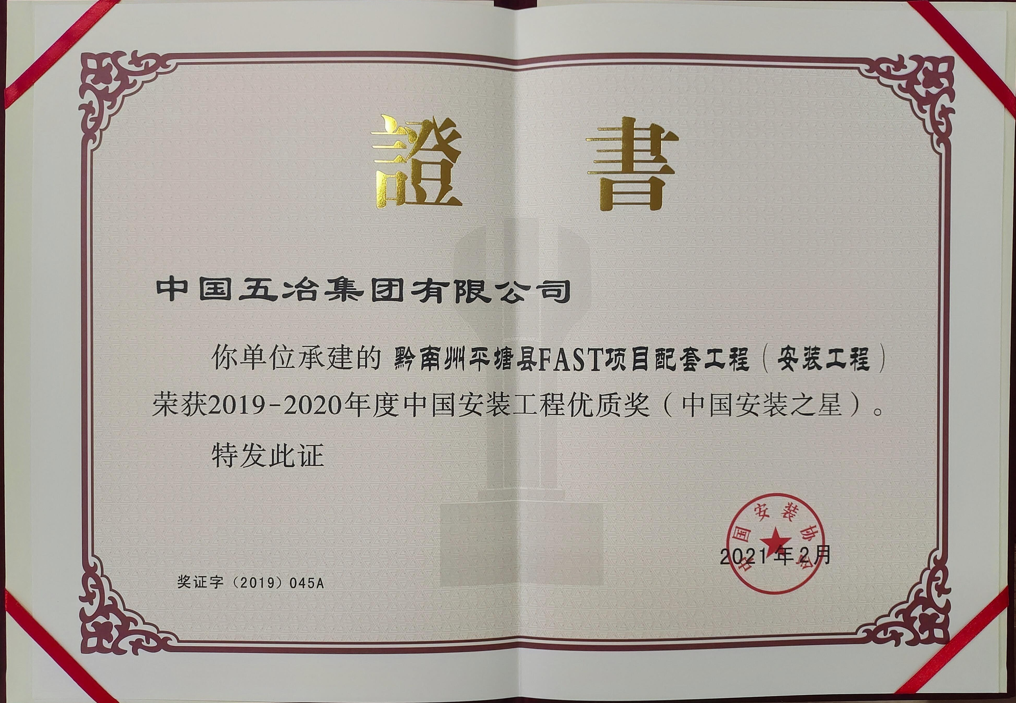 黔南州平塘县FAST项目配套工程——2019-2020年度第一批中国安装工程优质奖(中国安装之星)