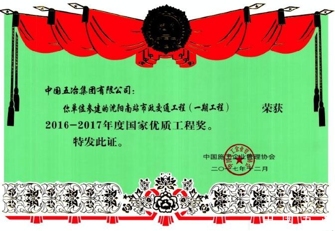 沈阳南站市政交通工程(一期工程)-2016-2017年度国家优质工程奖