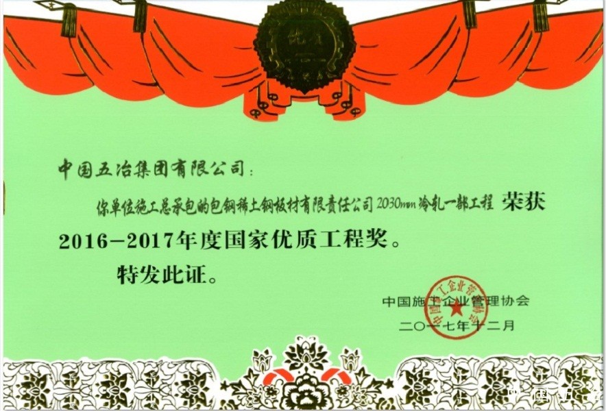 包钢稀土钢板材有限责任公司2030mm冷轧工程——2019年度鲁班奖