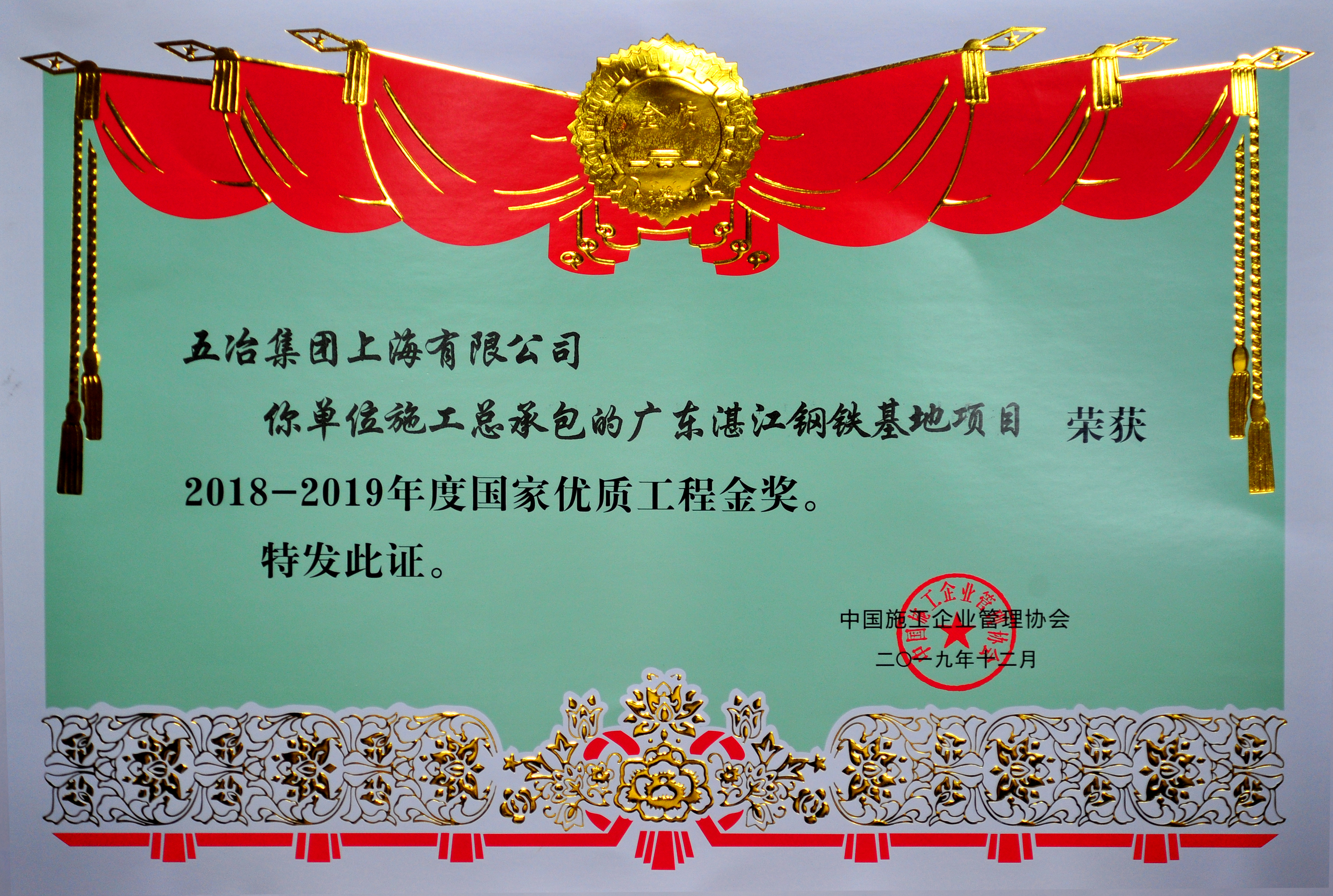 广东湛江钢铁基地项目——2019年度国家优质工程奖金奖
