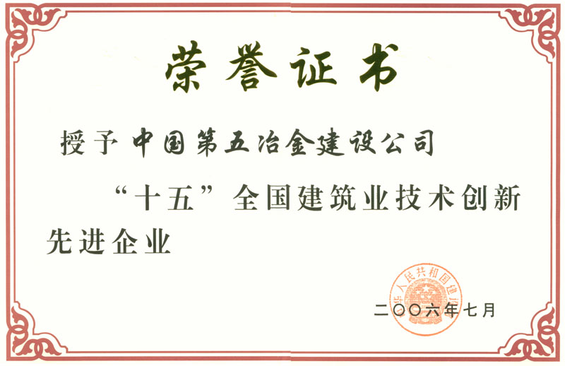 “十五”全国建筑业技术创新先进企业